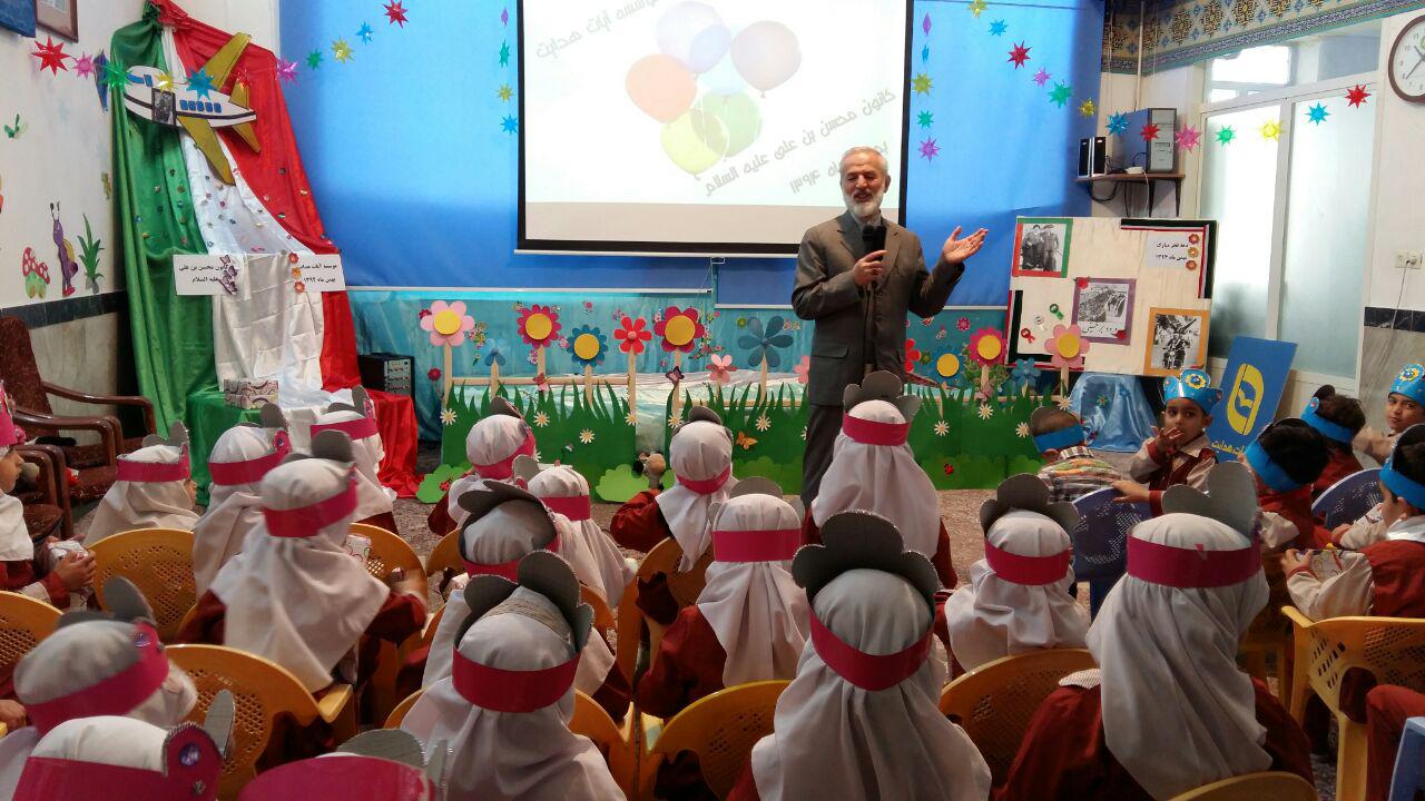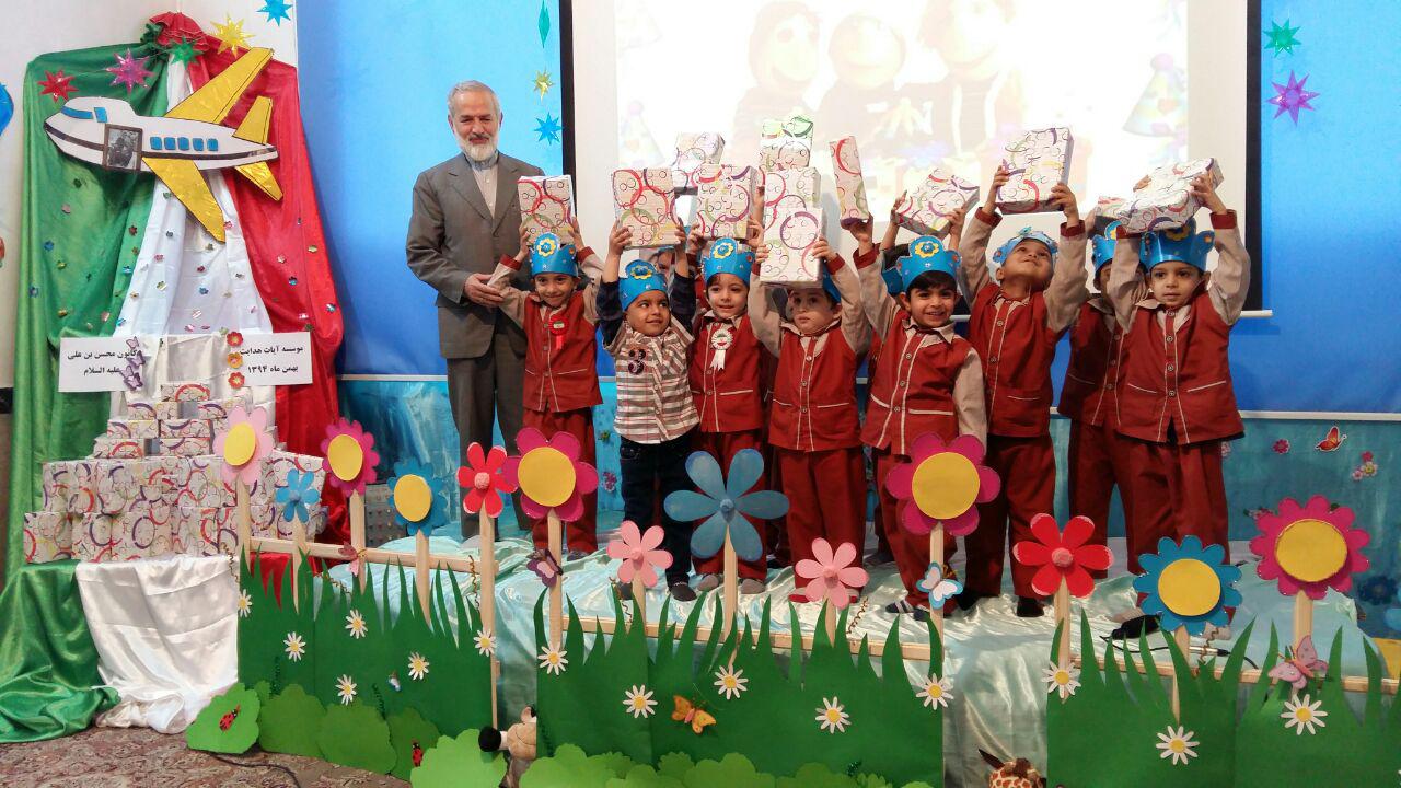 بافرارسیدن ایام الله دهه ی مبارک فجروسالروز ورود امام خمینی(ره)بنیانگذارانقلاب اسلامی به ایران،خانم عامری مدیرکانون"محسن بن علی علیهماالسلام"با برپاکردن همزمان دوجشن پیروزی انقلاب اسلامی وجشن تولدبرای قرآن آموزان مهد،آنهاراباشخصیت امام خمینی(ره)آشناکرده ورمزپیروزی انقلاب اسلامی راپیروی مردم ازبیانات امام خمینی(ره)دانستند.همچنین نونهالان قرآنی بااجرای برنامه های متنوع باانقلاب وولایت فقیه تجدیدمیثاق کردند.جناب آقای عزیزی مدیرموسسه آیات هدایت نیزدراین مراسم حضورگرم داشتندوبعدازسخنرانی ایشان بااعطای جوایزبه بچه ها محفل مارا نورانیت بخشیدند.
