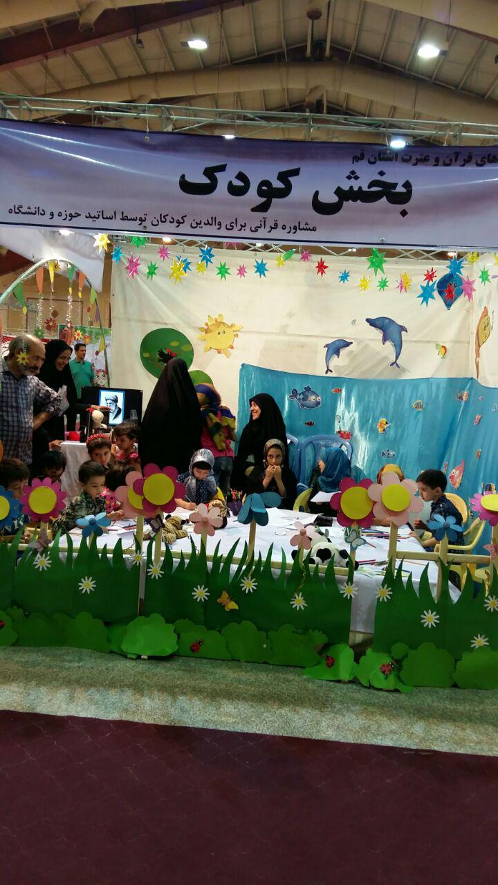 ازجمله غرفه های کودک  درنمایشگاه،غرفه اتحادیه تشکل های قرآنی استان قم بودکه بافعالیت هایی ازجمله مشاوره تربیتی-قرآنی  برای والدین کودکان که توسط حجج السلام آقایان بریحی،منابی وزمانی برگزارشد که به بررسی مشکلات خانواده ها و ارائه راه حل به خانواده ها فعالیت داشتند.وهمچنین غرفه دوم اختصاص به کودکان  ۳الی۱۲سال داشت که فعالیت هایی ازجمله،نقاشی،کاردستی و قرآن بخوان-جایزه بگیر.