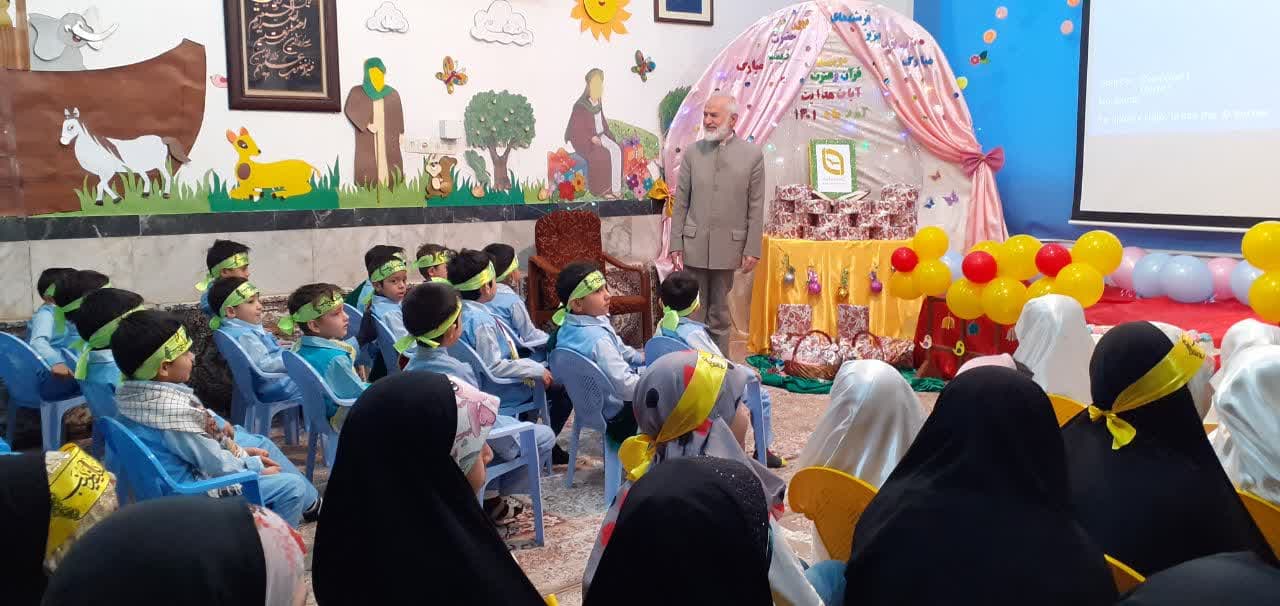 در این مراسم نو آموزان به تلاوت قرآن،اجرای سرود،دکلمه خوانی و شعر خوانی پرداختند. در پایان مراسم به نوگلان و حافظان قرآن هدایایی توسط آقای دکتر عزیزی تقدیم شد.