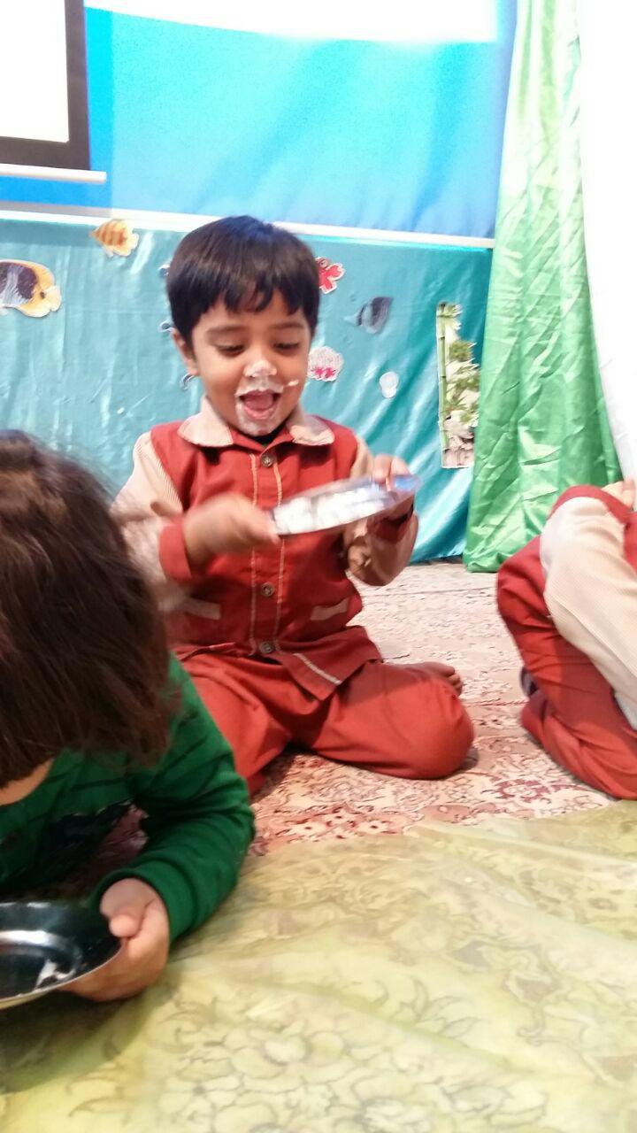 خواندن قرآن و سرود و برگزاری مسابقه ی جذاب ماست خوری
