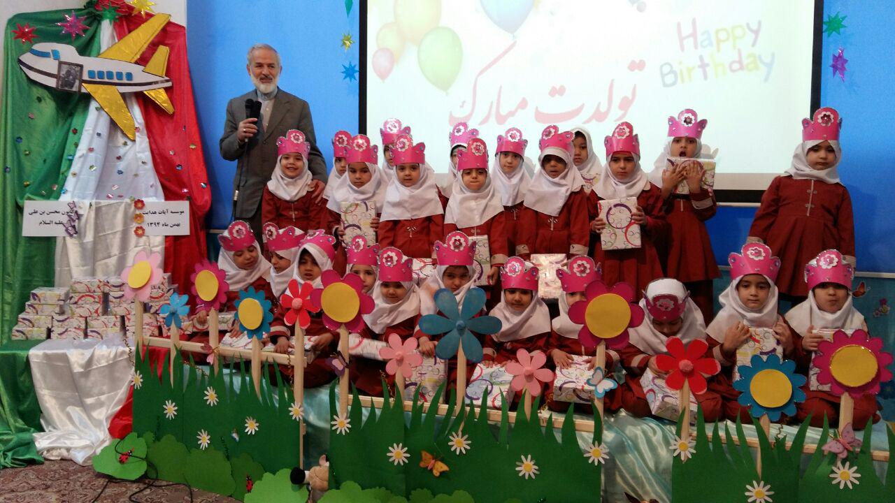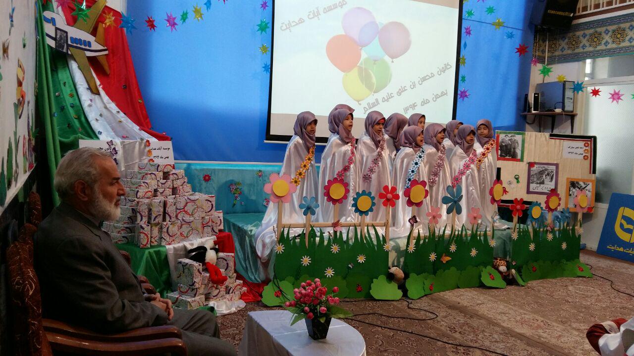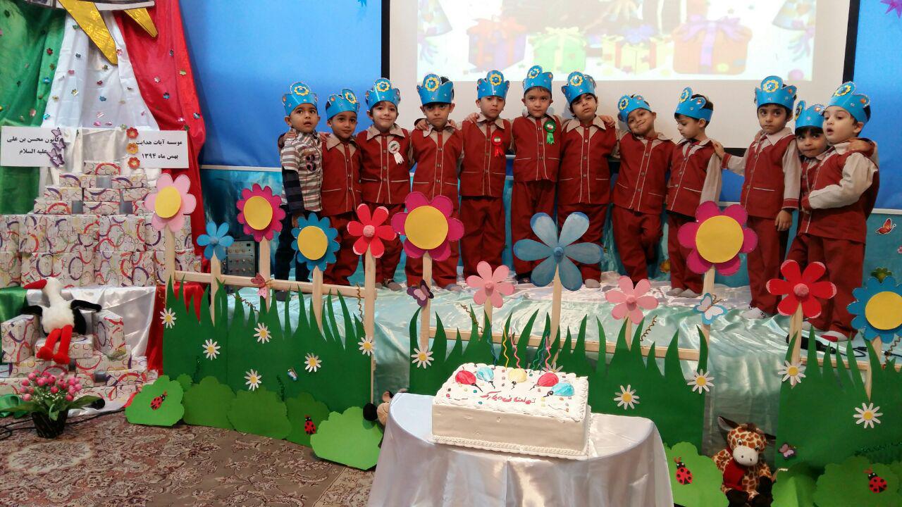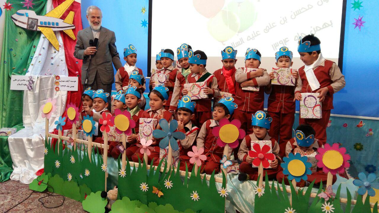 بافرارسیدن ایام الله دهه ی مبارک فجروسالروز ورود امام خمینی(ره)بنیانگذارانقلاب اسلامی به ایران،خانم عامری مدیرکانون"محسن بن علی علیهماالسلام"با برپاکردن همزمان دوجشن پیروزی انقلاب اسلامی وجشن تولدبرای قرآن آموزان مهد،آنهاراباشخصیت امام خمینی(ره)آشناکرده ورمزپیروزی انقلاب اسلامی راپیروی مردم ازبیانات امام خمینی(ره)دانستند.همچنین نونهالان قرآنی بااجرای برنامه های متنوع باانقلاب وولایت فقیه تجدیدمیثاق کردند.جناب آقای عزیزی مدیرموسسه آیات هدایت نیزدراین مراسم حضورگرم داشتندوبعدازسخنرانی ایشان بااعطای جوایزبه بچه ها محفل مارا نورانیت بخشیدند.