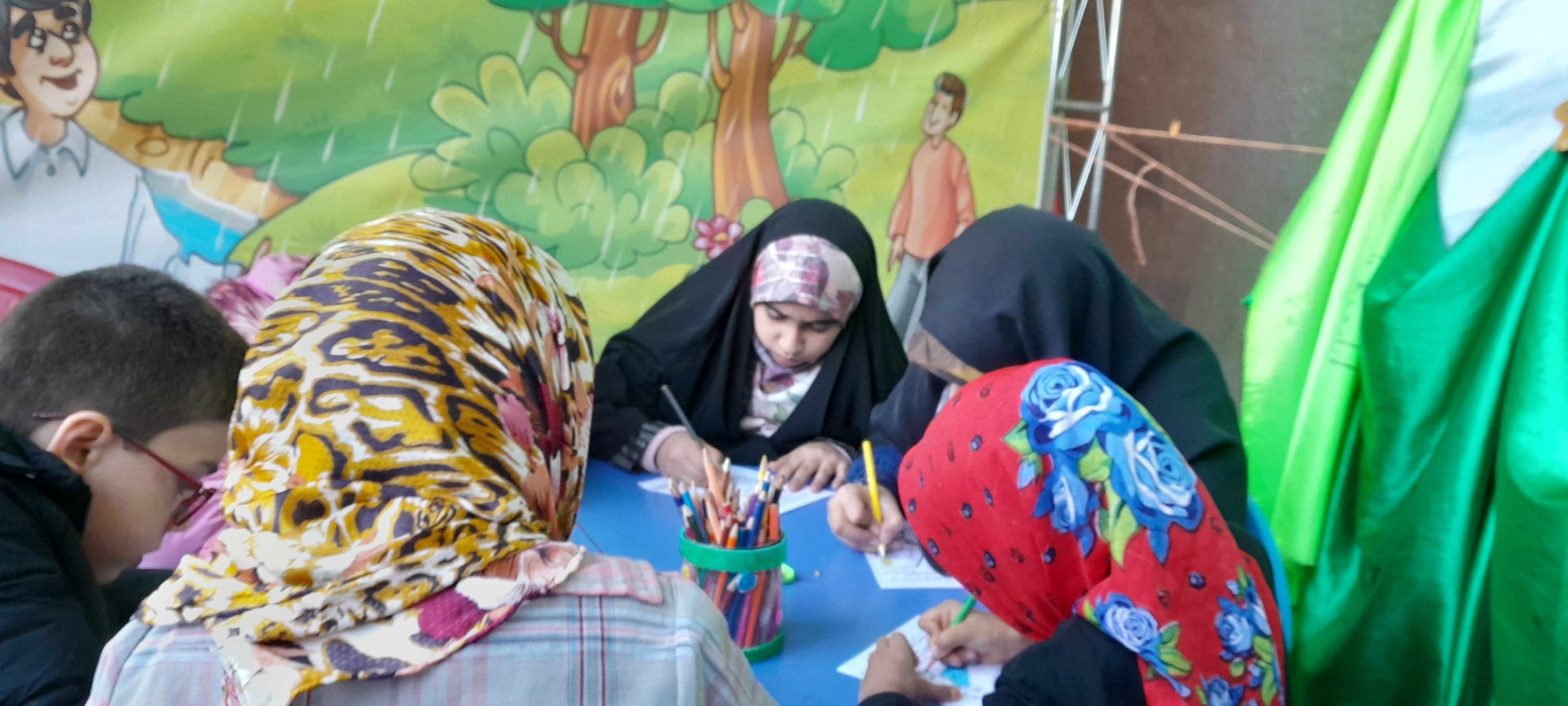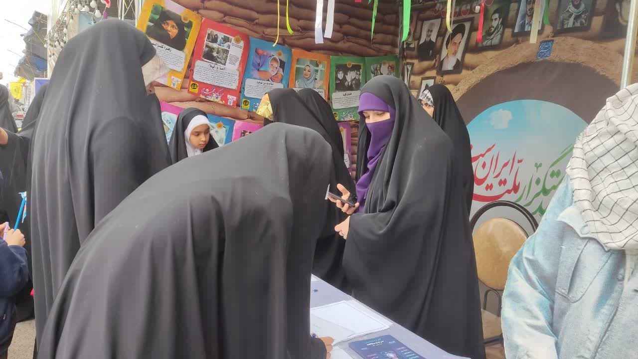 غرفه حجاب و عفاف واهدای کتاب و جوایز به نوجوانان با حجاب