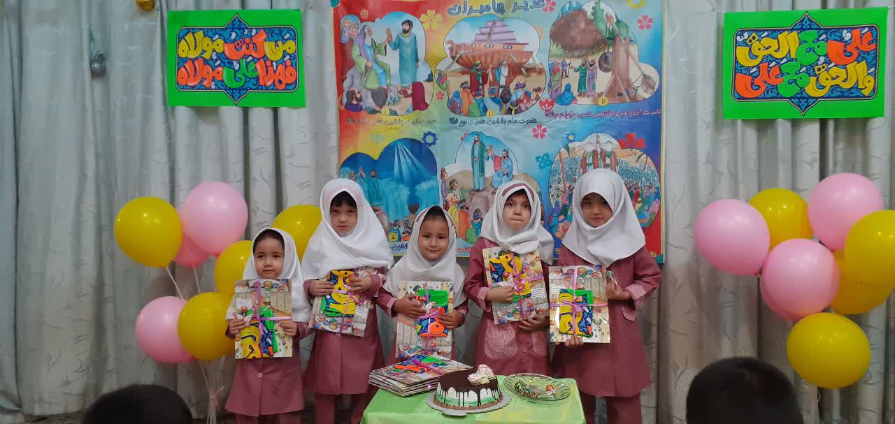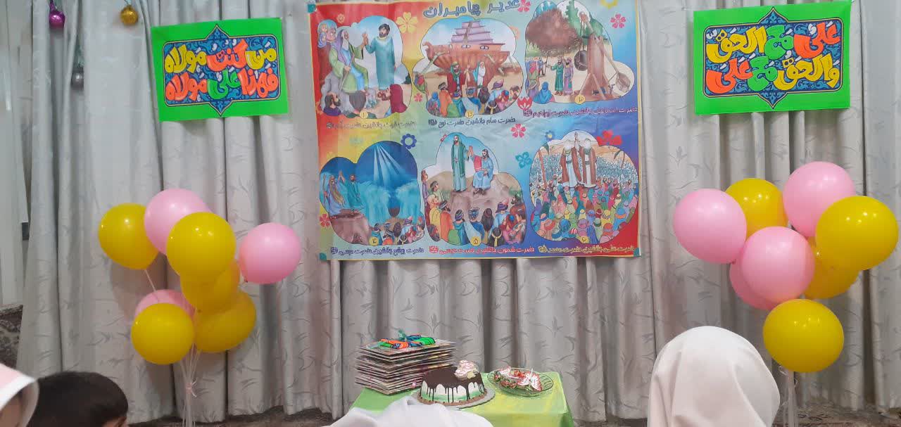 روز عید غدیر در موسسه حال و هوای دیگری داشت و جشن بزرگی برگزار شد.این جشن زیبا با مولودی خوانی و شادی قرآن آموزان عزیز شروع شد و شنیدن داستان غدیر ادامه پیدا کرد، تماشای انیمیشن غدیر از دیگر برنامه های جشن بود در پایان جوایزی زیبایی به نوگلان اهدا شد و کام خود را شیرین کردند.
