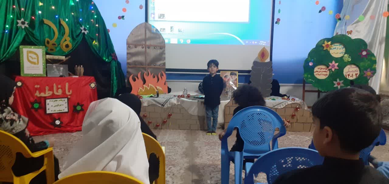 درسالروز وفات الگوی زنان عاشورایی،فرشته های کوچک موسسه به عزاداری و سینه زنی پرداختند. و در ادامه مراسم عزیزان از طریق اجرای نمایش عروسکی با زندگینامه مادر بزرگوار حضرت عباس(علیه السلام)آشنا شدند.