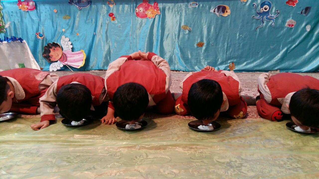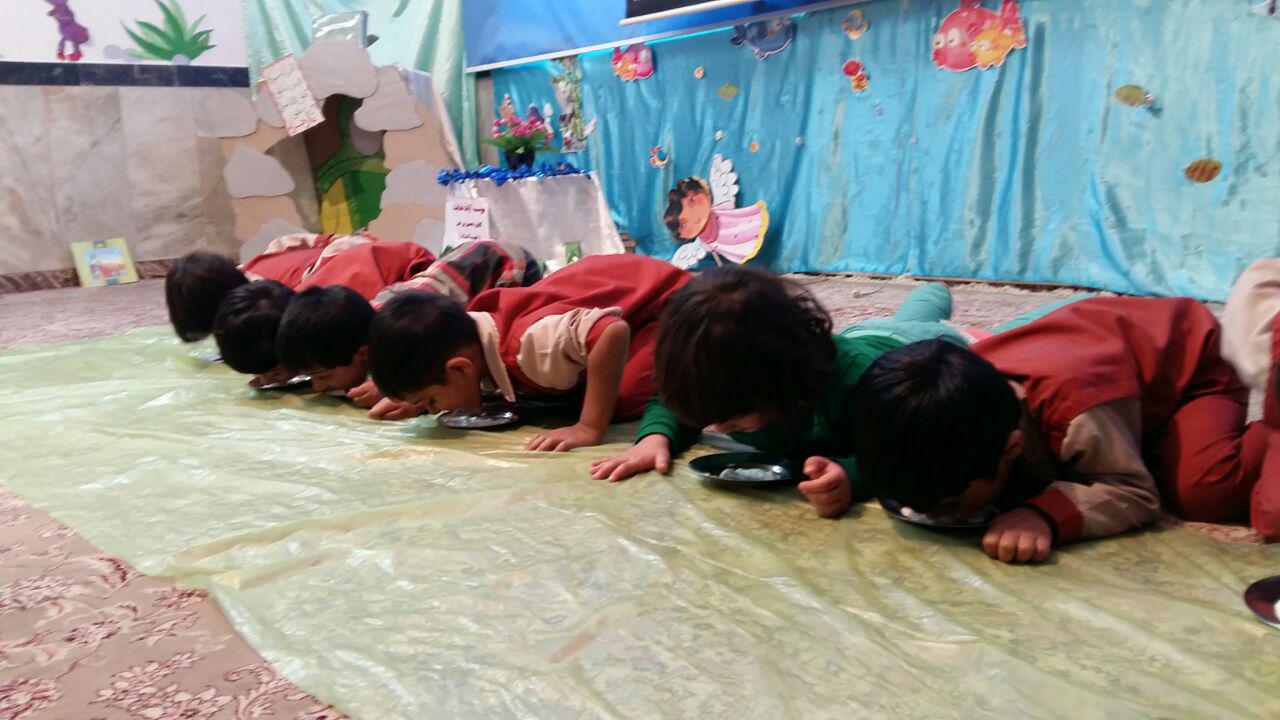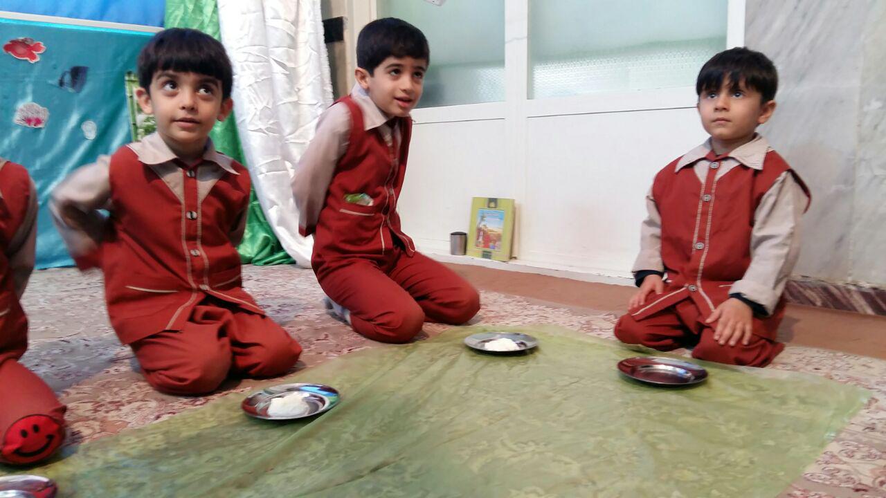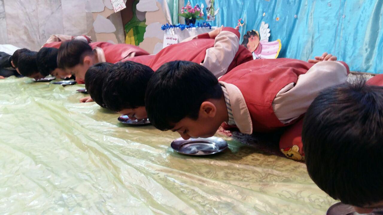 خواندن قرآن و سرود و برگزاری مسابقه ی جذاب ماست خوری