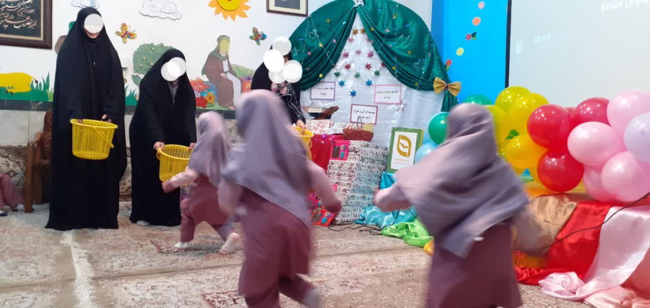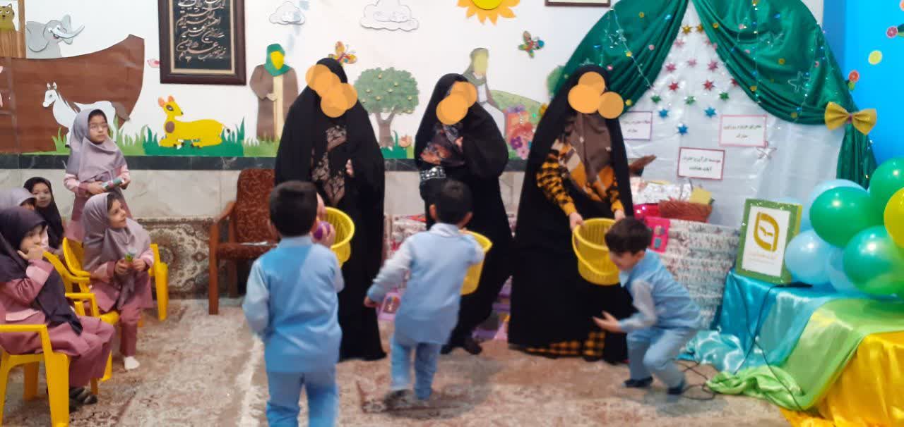 در ادامه این مراسم پرشور، دختران و پسران با کمک مادران خود مسابقه ای مهیج برگزار نمودند .