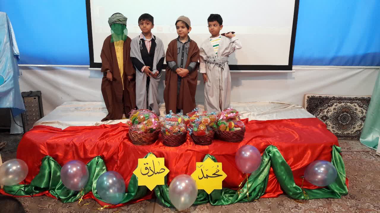 این مراسم با همخوانی قرآن توسط جمعی از نونهالان آغاز شد و در ادامه، گروهی از قرآن آموزان به اجرای تواشیح و سرود پرداختند. اجرای نمایش «پیامبر و خارپشت» توسط قرآن آموزان، از دیگر بخش های شاد و مفرح این مراسم بود. در این نمایش، خلاصه ای از پندها و نصایح پیامبر در قالب قصه به اجرا در آمد. در ادامه، یکی از مربیان در مدح پیامبر اعظم صلوات الله علیه و امام جعفر صادق به مدیحه ثرایی و مولودیه خوانی پرداخت.