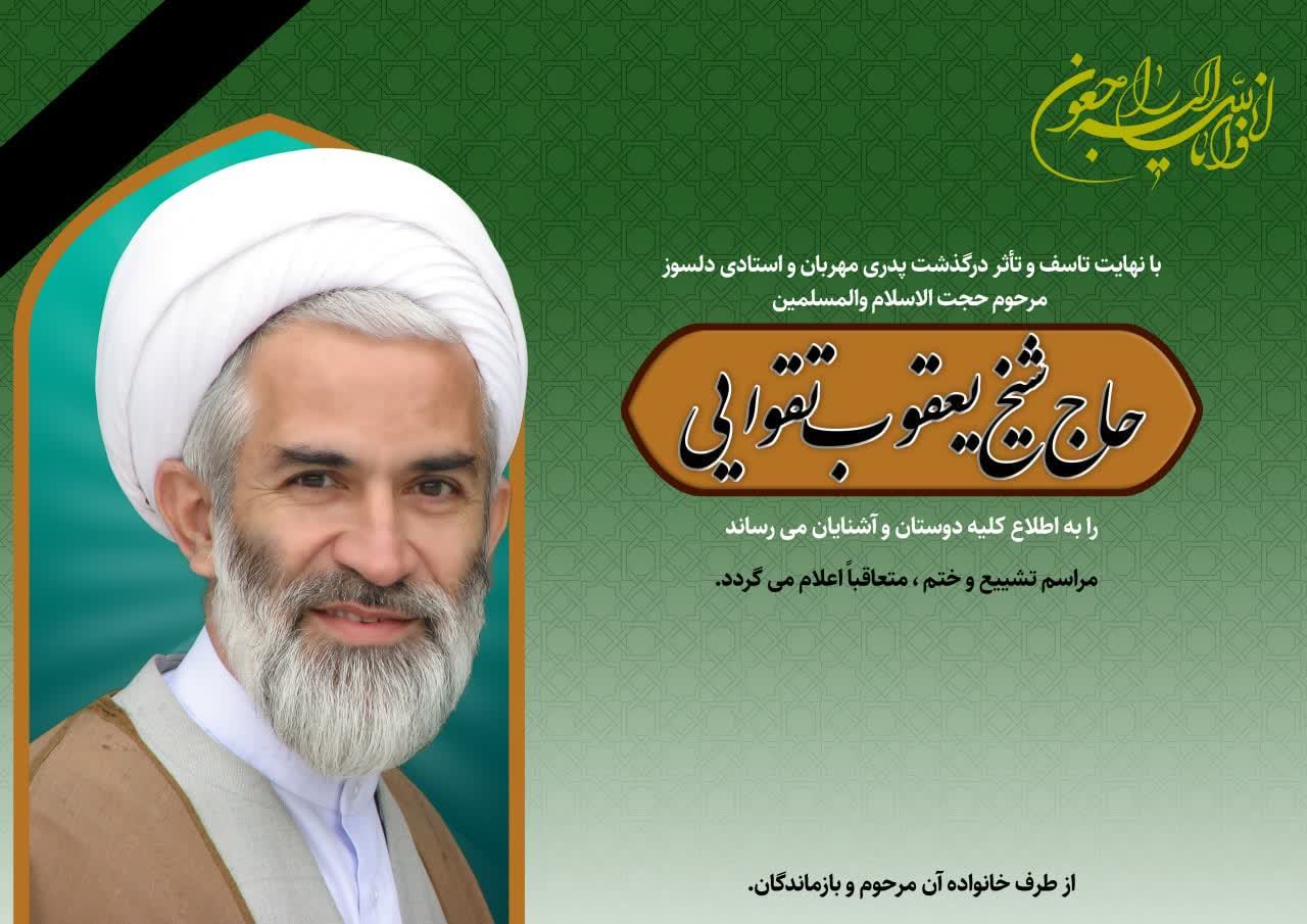 درگذشت مرحوم مغفور، حضرت حجت الاسلام و المسلمین حاج شیخ یعقوب تقوایی