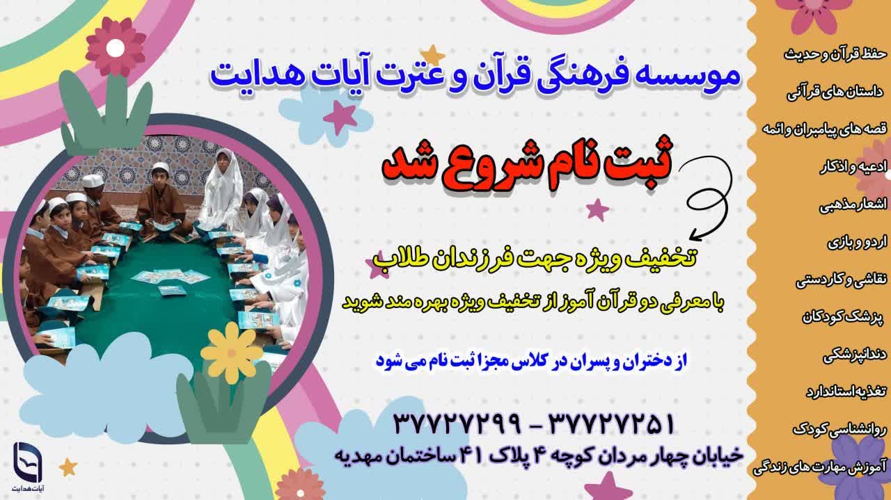 شروع ثبت نام از قرآن اموزان چهار الی شش ساله و پیش دبستانی جهت سال تحصیلی ۱۴۰۲
