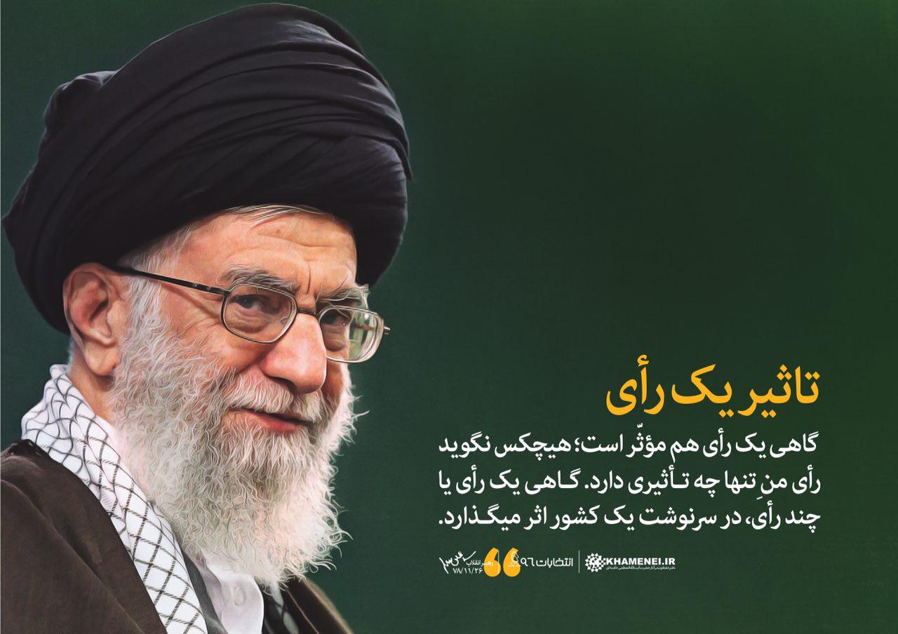 مقام معظم رهبری: همهی آحاد مردم، تکتک آحاد مردم خودشان را موظّف بدانند که علاوه بر اینکه در انتخابات شرکت میکنند دیگران را هم به شرکت در انتخابات دعوت کنند؛ این، تواصی به حق است: «وَ تَواصَوا بِالحَق» که در قرآن کریم هست؛ این، توصیه کردن به حق است؛ این وظیفه است و این کار را انجام بدهند؛ افراد خانواده، دوستان، همکاران، معاشرین، آحاد مردم و کسانی که با آنها سر و کار دارید را به [شرکت در انتخابات] دعوت کنید.