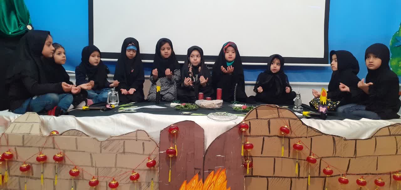 این مراسم با قرائت قرآن و تلاوت سوره کوثر و هدیه آن به بی بی دو عالم آغاز شد؛در ادامه به اجرای سرود و تماشای انیمیشن داستانی حدیث کسا پرداخته شد.