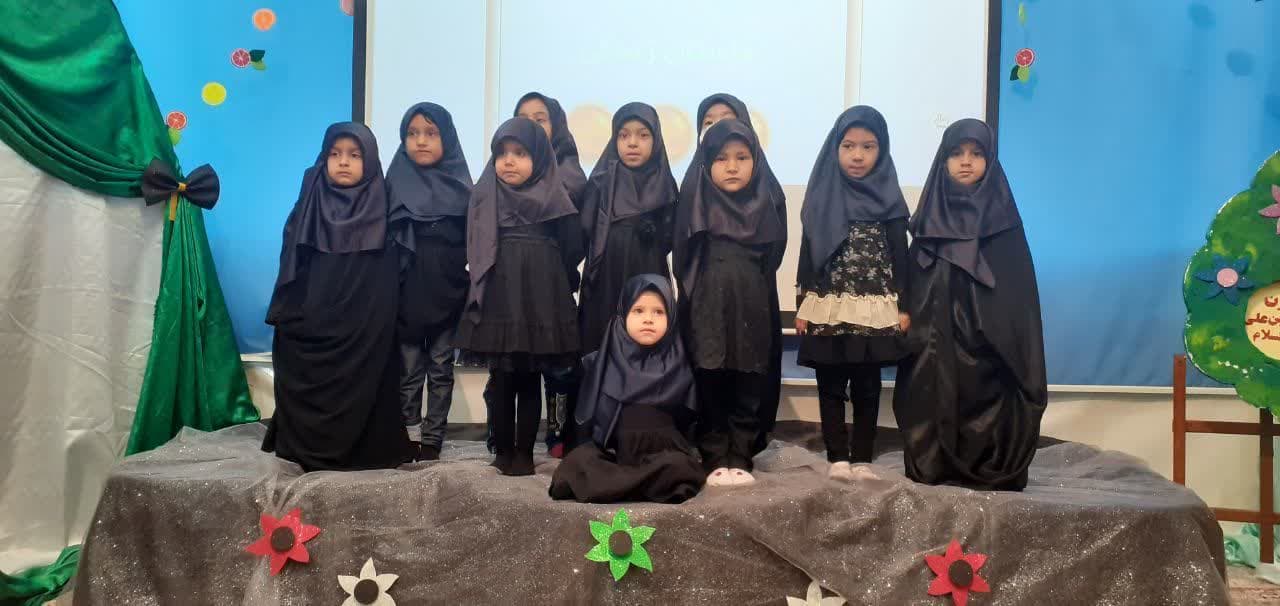 در این مراسم نوگلان،امام بزرگوارمان را با تماشای انیمیشن زندگی ایشان وشنیدن داستان بیشتر شناختند و با صرف حلوای شهادت و دعا برای تعجیل در فرج امام زمان(عجل الله تعالی فرجه) مراسم را به پایان رساندند.