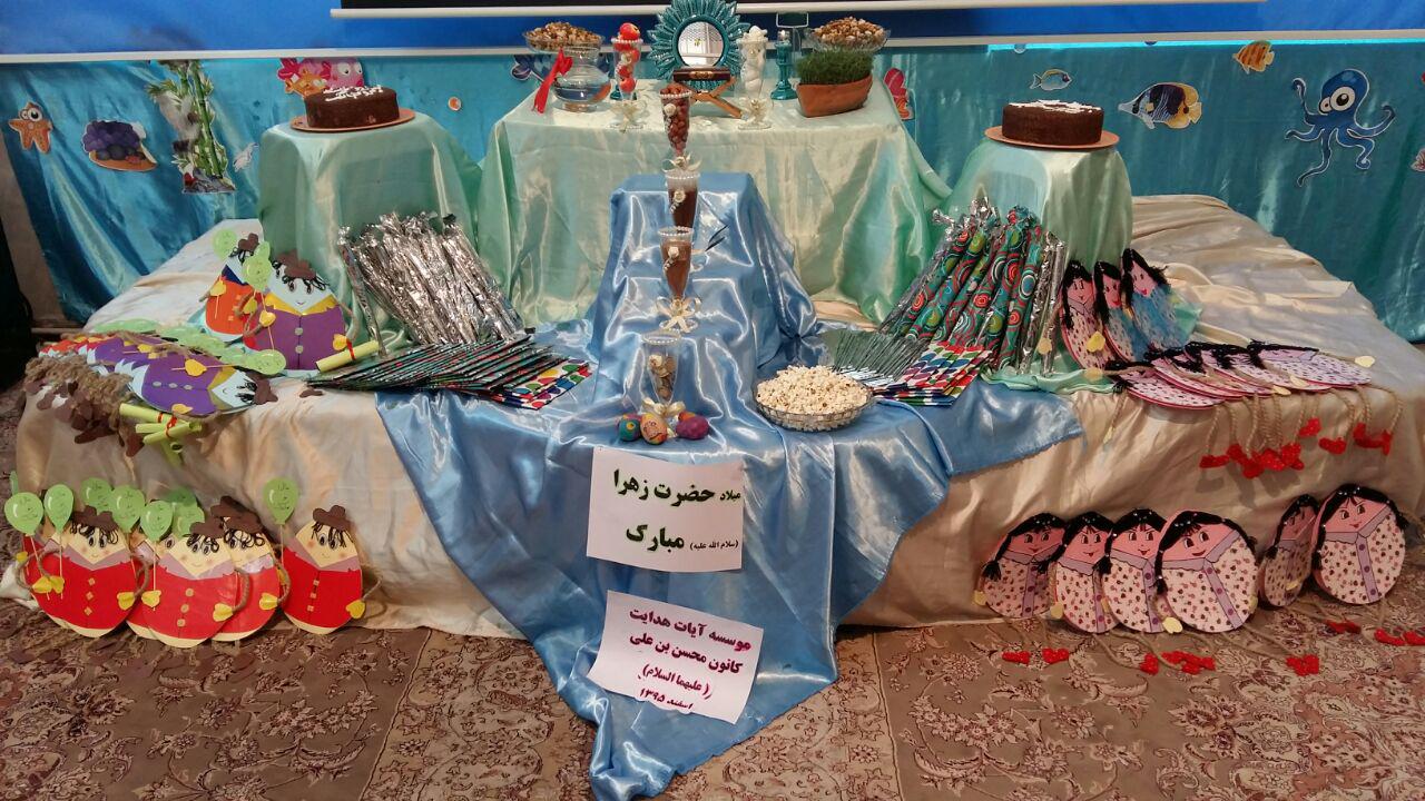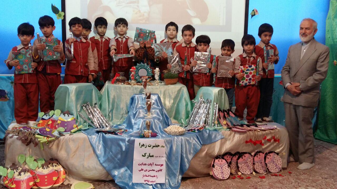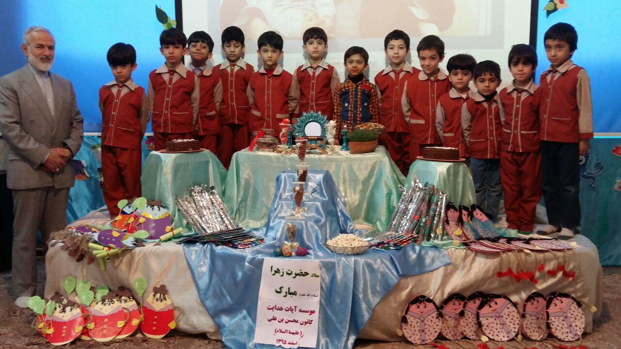 نوگلان قرآنی با قرائت سوره کوثر و سرود ، و مربیان در مورد میلاد حضرت توضیحاتی دادند و جشن را با شادی منور کردند و آقای عزیزی مدیر موسسه آیات هدایت که مهمان ویژه این بدنامه بودند با دادن جایزه و پیک نوروزی و بچه ها باخوردن کیک و اجیل و پفیلا یک روز پر خاطره و نشاط و شادی درذهنشان نقش بست.